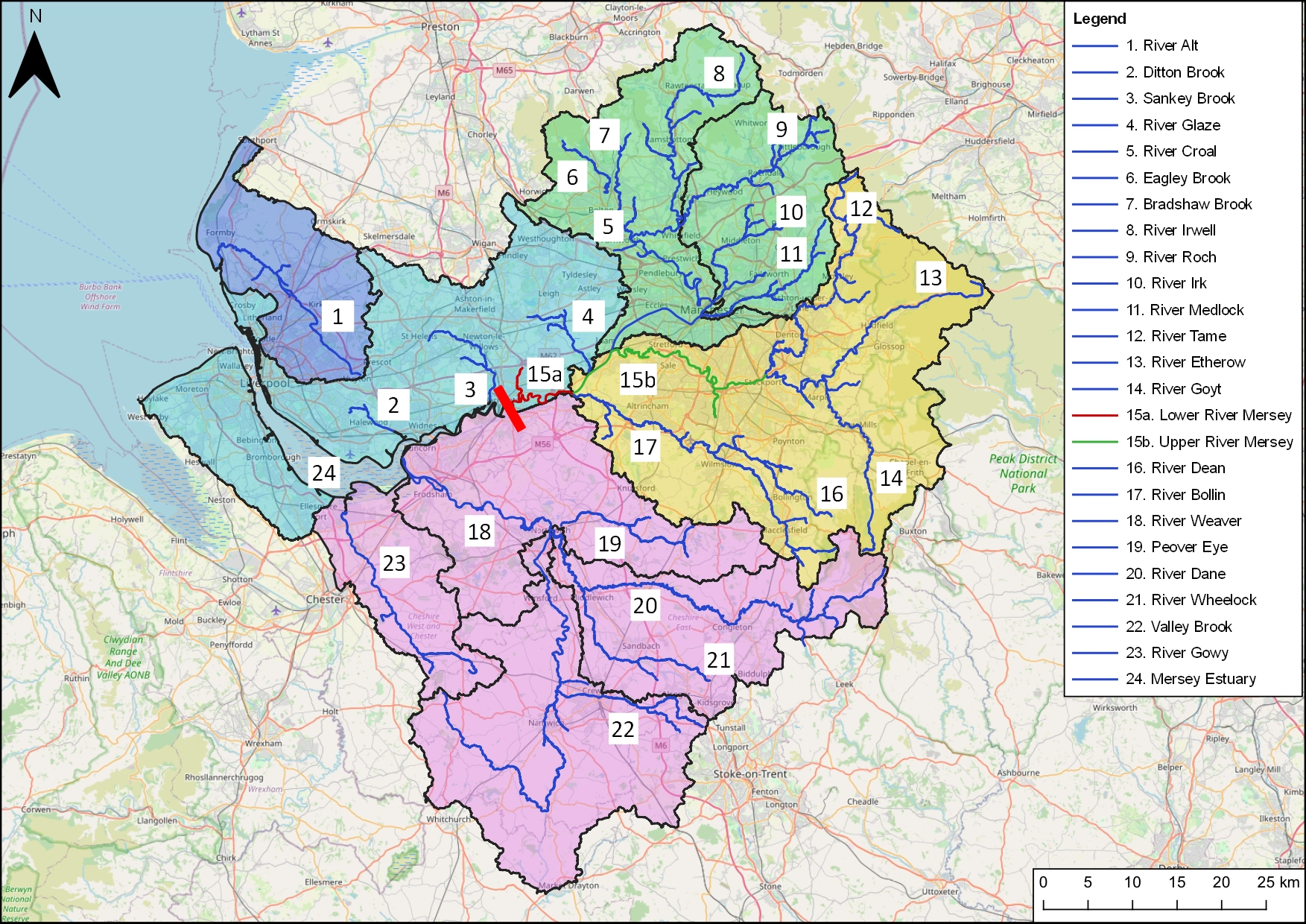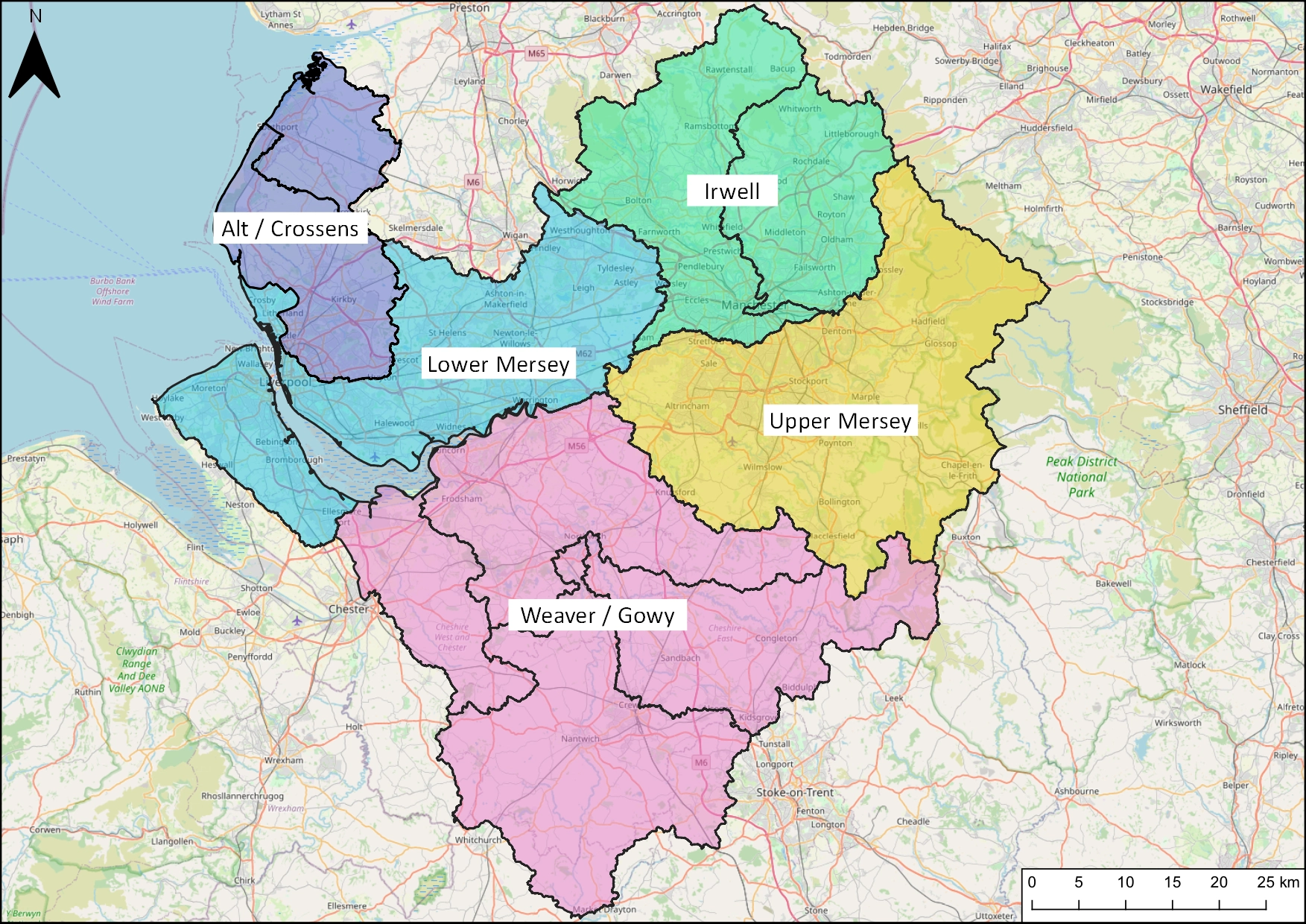 The Mersey Basin includes the cities of Liverpool, Manchester and Salford which, in total, cover an area of over 125 square miles.