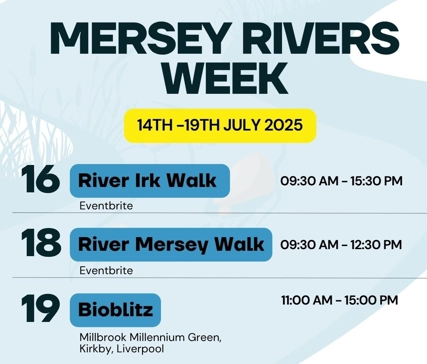 It's Mersey Rivers Trust’s annual “Mersey Rivers Week” this week running from Monday 14 July to Saturday 19th July across Merseyside, Greater Manchester and Cheshire.